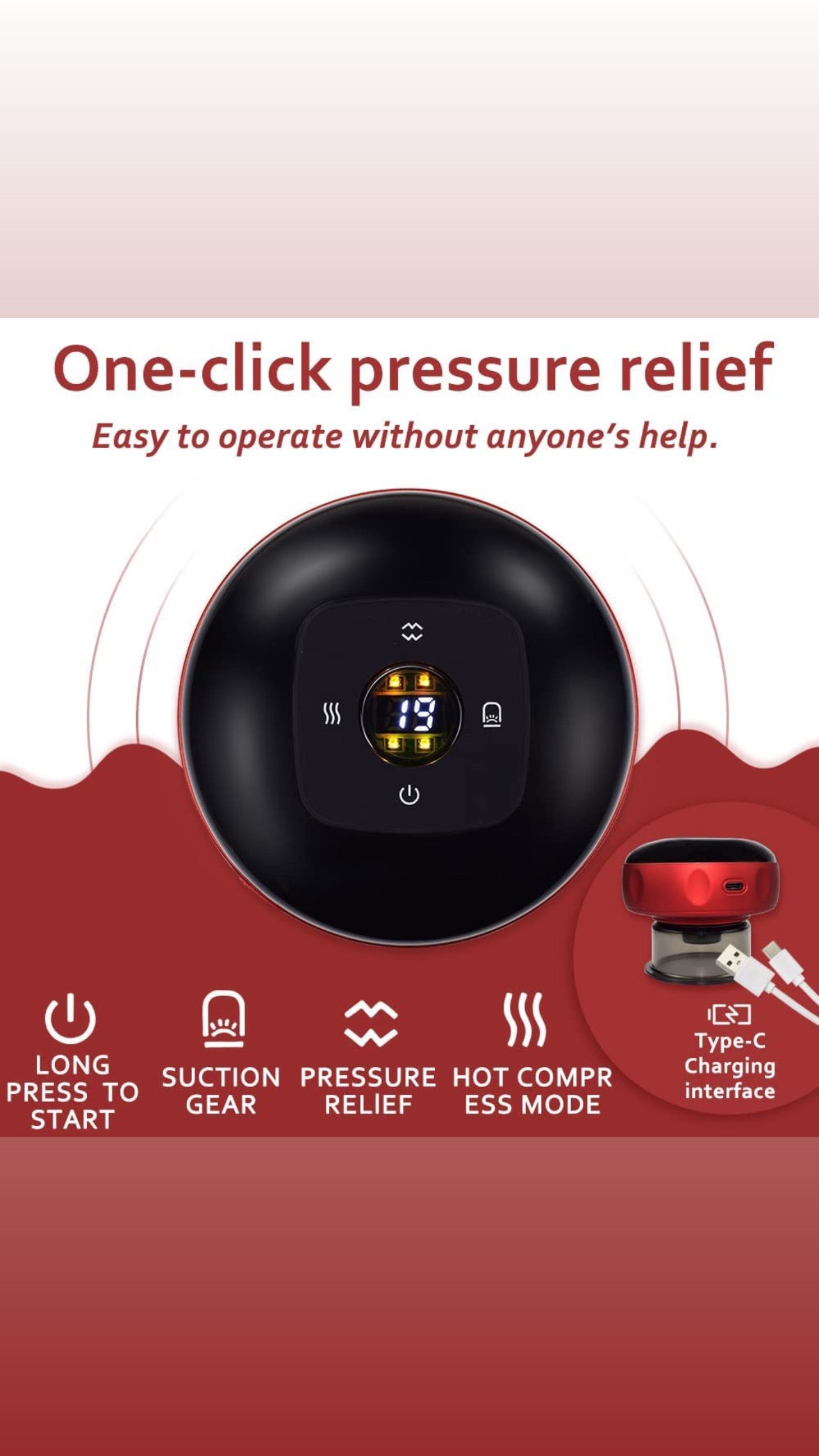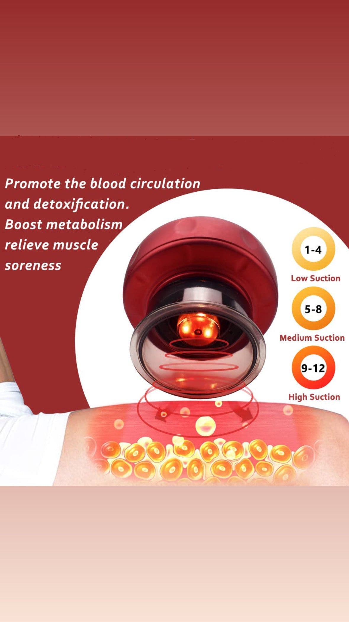 This smart, cordless vacuum cupping massager delivers deep suction, scraping, and soothing heat—right from the comfort of home. Experience deep cupping therapy and muscle detox at the press of a button—lightweight, wireless, and designed for total body relief.